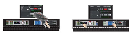 增強型調音臺應用集成的高分辨率觸摸屏監控,裝載KLOTZ控制軟件CCE,可支持所有第三方的軟件應用。觸屏上輕輕一點,即可執行指令,并可顯示于大屏監控。