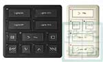 個潔凈、方形按鈕。水平毗鄰的正方形按鍵可用雙倍寬度的長方形、雕刻圖案按鍵來替換,以用于實現舒適或強調。雖然如此,區別也是明顯的-潔凈的按鈕可貼上帶文本和
