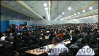 由于會場空間較大,參與人員較多,會場雜音也相對的會比較大,因此對會議系統(tǒng)的音質(zhì)、防嘯叫、拾音效果等要求都比較嚴(yán)格。根據(jù)這些情況,整個會場的會議系統(tǒng)部分我們采用CREATOR快捷最新研發(fā)的全數(shù)字會議討論系統(tǒng)主機CR-3301為整個會議的核心控制,由于其采用全數(shù)字傳輸,性能優(yōu)異,可以給整個會議提供靈活的管理及全過程實行全面的控制,還具有多功能、高音質(zhì)、數(shù)據(jù)傳送保密等優(yōu)點。也可輕松控制整個會場的發(fā)言,具有多種會議模式選擇,高質(zhì)量的音頻處理技術(shù),防止了嘯叫、雜音等,音質(zhì)更加清晰。會議主機具備12通道同聲傳譯功能;可向各發(fā)言單元傳送12通道語音;鑒于安裝和維護(hù)的需要,所有單元連接(含主席單元、發(fā)言單元、翻譯單元)必須采用"手拉手"電纜串接模式;具有音頻輸入接口,可輸入外部音頻信號(如背景音樂);具有多組原音通道輸出,可連接PA功放對發(fā)言者的語音進(jìn)行放大輸出,也可連接卡座進(jìn)行錄音。發(fā)言人數(shù)限制功能;語音激勵功能:能自動檢測發(fā)言狀態(tài),并驅(qū)動視頻控制部分,自動將對準(zhǔn)發(fā)言人的攝像機畫面切換主畫面窗口;先進(jìn)先出功能配合攝像跟蹤系統(tǒng)可實現(xiàn)視像自動跟蹤功能。至少可連接30臺翻譯單元,實現(xiàn)12種語言同聲傳譯功能。整個會場的與會者非常的多,但真正發(fā)言的人數(shù)卻只有600多人,這里采用了600席CREATOR快捷最具代表特色的推拉滑蓋式發(fā)言單元。其外觀精美、典雅與及獨特的推拉滑蓋防塵設(shè)計,把會場點綴得更加科技化,無疑是會場的一大風(fēng)景線,也是會場的一大亮點之一。高指向性的咪桿,360度拾音效果大大減少了發(fā)言者發(fā)言聲音小,音質(zhì)差等缺點。主會場的主席臺上安裝了10席主席機發(fā)言單元,采用的是推拉滑蓋式帶觸摸屏發(fā)言單,其具備3.5寸320X240象素的真彩觸摸屏,支持畫中畫,可顯示外圍設(shè)備的視頻信號,配合會場攝像機實現(xiàn)視像與會議單元自動跟蹤功能,監(jiān)視會場情況。