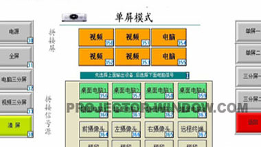 通過PGMⅡ控制各個矩陣,會議主機,各個攝像頭,GP6000,實現多屏拼接,信號在大屏和臺面顯示器間可以實現自由切換,音頻同步輸入到調音臺,實現會議跟蹤。