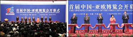 2011年首屆中國亞歐博覽會于9月1日至5日在新疆烏魯木齊會展中心隆重開幕,本次博覽會共吸引了來自30多個國家超過30萬人參展參觀,其中到會嘉賓及客商有5萬多人,包括中共中央政治局常委國務院副總理李克強、國家商務部副部長傅自應、聯合國貿發會議秘書長素帕猜•巴尼巴、巴基斯坦伊斯蘭共和國總統扎爾達里先生、吉爾吉斯斯坦總統奧通巴耶娃女士、阿塞拜疆共和國副總理沙里福夫先生、哈薩克斯坦副總理伊謝克舍夫先生、匈牙利共和國前總理邁杰希先生、全國人大常委會副委員長司馬義•鐵力瓦爾地先生、香港特別行政區行政長官曾蔭權先生、澳門特別行政區行政長官崔世安先生和來自33個國家代表團團長,有關國際組織負責人,外國駐華和我國駐外使節,27個國家有關部委,30個兄弟省區市和4個計劃單列市領導,世界500強企業高管等重量級嘉賓。
