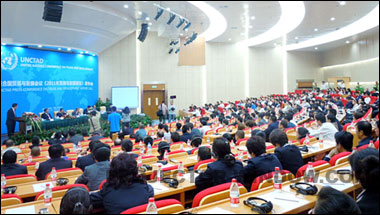 此次聯合國貿易與發展會議,為了讓各國到場的嘉賓能夠清晰接聽到會議的全部內容及事項,CREATOR快捷為會場提供了1200席數字紅外語音分配系統,配置了4臺M4103E3翻譯單元,提供8種語言的同聲傳譯服務,每種語言由二位翻譯人員接力翻譯。同時,為了給現場的各國代表與記者提供多語種旁聽,根據會議室的室內結構,在四周相應的位置配置了10臺紅外輻射面板,使得會場的各個位置都可以接收到現場的多路紅外音頻信號。在會議期間,會議的內容是需要進行保密性處理。通過CREATOR快捷全數字DQPSK數字解調的技術處理,在保障會議完美進行的同時,也很好地對會場外地信號進行了抑止,完美地實現了數字紅外語音分配技術。
