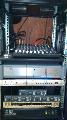 機(jī)柜設(shè)備配有:DVD,無線話筒,音頻處理器,電源時序器,調(diào)音臺等。