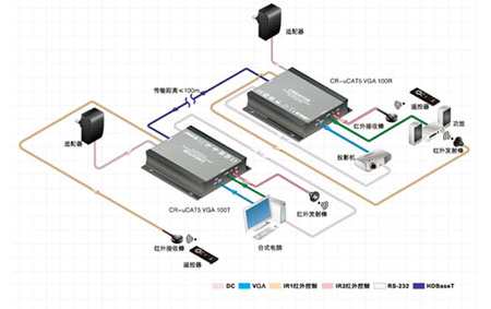 支持雙向RS-232、IR、音頻、視頻同時(shí)傳輸,達(dá)100m距離。