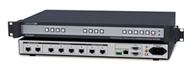 數(shù)字CAT5矩陣切換器是通過(guò)CAT5e/6傳輸高清信號(hào)的高性能內(nèi)嵌控制切換系統(tǒng)。該切換器和CAT5發(fā)送/接收器、紅外發(fā)射/接收器配合使用。系統(tǒng)支持內(nèi)嵌雙向RS-232、IR切換功能及多種控制方式,可任意組合搭配使用組成控制全面的CAT5傳輸系統(tǒng)解決方案。應(yīng)用于廣播電視工程、多媒體會(huì)議廳、大屏幕顯示工程、電視教學(xué)、指揮控制中心、智能家居等場(chǎng)所。