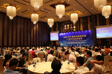 引領(lǐng)未來高清視界——CREATOR快捷2013年新品發(fā)布會深圳站在大中華喜來登酒店宴會廳圓滿召開。下午13:30分參會嘉賓陸續(xù)進(jìn)場,前來參會的嘉賓多達(dá)數(shù)百人。發(fā)布會上CREATOR快捷副總經(jīng)理王國孟先生正式宣布深圳分公司成立并致答謝詞。現(xiàn)場展示并講解了CREATOR快捷最新研發(fā)的新品,“CM”模塊化高清系統(tǒng)、光纖會議系統(tǒng)、WiFi無線會議攝像跟蹤版、網(wǎng)絡(luò)型中央控制系統(tǒng)等新品。