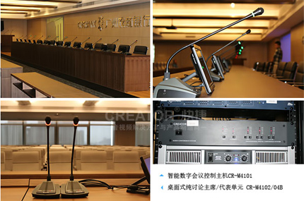 全數(shù)字會議主機CR-DIG5201、高性能網(wǎng)絡(luò)化可編程中央控制主機CR-PGMШ等設(shè)備內(nèi)置于會議桌內(nèi),會場簡潔大方、時尚寬敞,適合多個部門聯(lián)合會議,該會議系統(tǒng)支持多種會議模式,如:FIFO(先進先出模式)、NORMAL(普通模式)、FREE(自由模式)、APPLY(申請模式),可限制發(fā)言人數(shù),發(fā)言單元1,2,4,6可調(diào),保障會議在有序高效中進行。