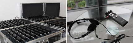 1302學(xué)術(shù)報告廳采用16通道數(shù)字紅外發(fā)射主機CR-IR3000A,翻譯員在同聲傳譯室使用全數(shù)字會議系統(tǒng)翻譯單元CR-DIG5203E3進行實時翻譯,紅外發(fā)射主機CR-IR3000A將數(shù)字音頻壓縮編碼,經(jīng)全數(shù)字DQPSK調(diào)制傳輸。鑒于會場的實際情況,CREATOR快捷針對性的在會場兩邊各安裝了3個高性能紅外輻射面板CR-IR3001,用于接收紅外發(fā)射主機的載波信號,并將載波信號通過紅外線發(fā)射出去。保證全場無信號死角。該學(xué)術(shù)報告廳配備了140席16通道紅外接收單元CR-IR3002A-16,該接收單元是按照人體工程學(xué)設(shè)計的紅外接收機,采用最新的電子技術(shù),運用專門的芯片,內(nèi)置鋰電池,保證最好的性能和最長的電池壽命,極好的接收紅外信號。
