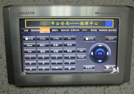 根據系統圖所示,通過CR-PGMIII各種接口分別控制了該應急指揮中心的各種設備,其中不僅包含CREATOR快捷CROSS7272矩陣、會議系統控制主機CR-M4101還包括:IR紅外口控制DVD、電視盒、視頻終端、DLP大屏、攝像機及音頻處理器、網絡口控制大屏拼接處理器;CRNET口外接電源控制器(用控制全場各類燈的開關及明暗調節)、無線接收器及4.3英寸嵌入式有線觸摸屏MT-430W。