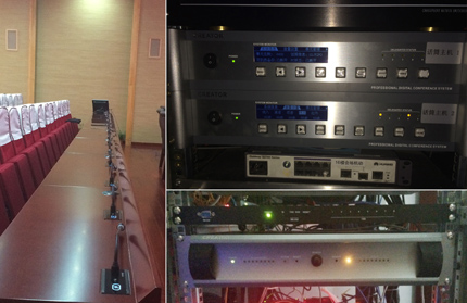 該中心,采用32bit高速浮點、DSP處理技術,集同傳、表決、話筒管理、顯示單元、攝像跟蹤、茶水申請、內部通話、短信息等多種技術于一身的全數字會議系統完美融合其中。近百席的CR-DIG5202/04C1-S、CR-DIG5204E1會議單元莊嚴整齊佇立,簡潔大氣的身形,如同英勇的戰士,平時沉默無言,但只要領導需要,就鏗鏘有力。其核心部分全數字會議主機CR-DIG5201完美置于機柜內,帶防嘯叫抑制功能,雙機熱備份,高度確保每一場會議的順利進行。
