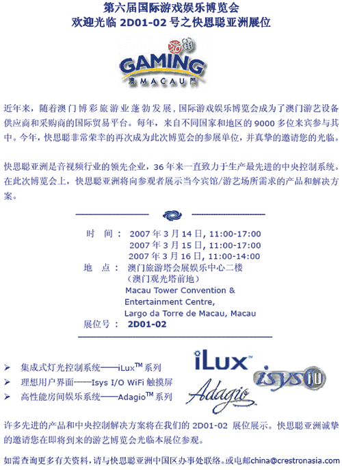 快思聰為世界知名的先進高級控制系統生產商,并提供自動化系統方案。廣泛應用于商業機構的董事會會議室、培訓室、會議室、視像會議、遙距教學中心、娛樂設備及高科技家居。我們的宗旨是 productspluspeople(卓越產品+優質服務+經驗員工)說明了憑借快思聰員工全心全意的工作態度,我們承諾專注于提供最優質的產品、編程及服務.如若查詢更多有關資料,請瀏覽