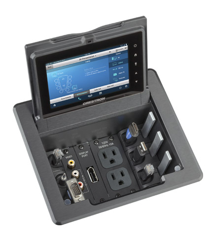 新推出的FT-TSC600 FlipTop配備3-Series®控制系統及5吋TSW觸摸屏,無論何時何地都可輕易地把一般房間變成智能會議室。FlipTop解決方案具有極高的配置性,可在單一桌面設備上綜合網絡連接、線材管理和控制。將連接艙內的線材接上手提電腦或平板電腦后,只需短短幾秒即可啟動簡報,同時把繁瑣的常規技術設備隱藏在桌面下方,實現優雅和簡潔的線材管理。