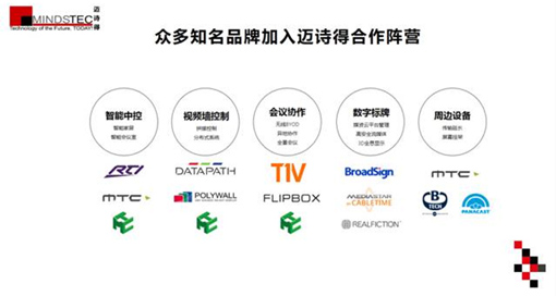 邁詩得亞洲在不同區域設立分支機構的同時,積極參加各種商業展覽,以便快速增加在亞洲的影響力。積極抓住在中國大陸和香港舉辦行業龍頭商業展覽機會,提升其品牌形象和拓展伙伴關系。通過展示最新的AV技術和解決方案與客戶面對面進行溝通,邁詩得能夠直接了解客戶的需求,并提供定制的技術支持和解決方案,更好地挖掘市場潛力。邁詩得訓練有素的專業團隊為客戶使用最前沿的音視頻技術方案提供有力的保障。通過邁詩得全球網絡和全面的產品覆蓋,合適的產品將被分銷到合適的市場。,并將一如既往的為合作伙伴和廣大用戶持續提供穩定、高端、全面的教育/酒店/家居/會議/展覽/信息發布等方案。