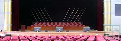 主席臺(tái):正中央設(shè)一幅12M*6.75M(16:9)電動(dòng)正投幕,主席臺(tái)左右各有一個(gè)150寸的背投;面對(duì)主席臺(tái)背對(duì)觀眾席有三個(gè)等離子屏,方便領(lǐng)導(dǎo)通過無線觸摸屏調(diào)用并觀看不同的視頻源。