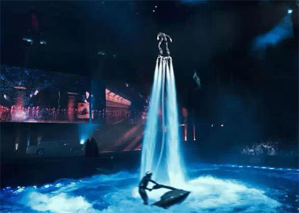 12月20日,大型駐場舞臺秀——《漢·秀》,在武漢首演。時長90分鐘的演出將雜技、器樂演奏、歌舞、高空跳水、水上芭蕾、水上摩托等表演融于一體,令觀眾目不暇接;水幕、巨型表演水池、水陸空“三維舞臺”、可飛行LED巨幕、可移動坐席等高科技設(shè)施的綜合運用使整場秀精彩紛呈。觀眾穿上了劇院提供的薄雨衣,演出剛半小時,座位隨劇情瞬間下降或上升,臺上忽而傾盆大雨,忽而噴泉四射;轉(zhuǎn)瞬水中花樣游泳,同時空中舞臺雜技表演,演員360度旋轉(zhuǎn)……刺激、震撼、不可思議的新奇體驗。