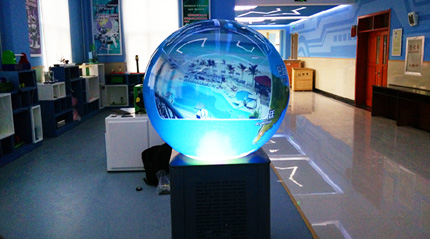 值得一提的是針對客戶要求配套開發的球面互動程序,內容豐富,包含了地球氣候分布、氣壓帶、風帶、洋流、地形、板塊、經緯度等地理知識。觸摸敏感,互動效果良好,完全達到了校方各項指標要求。
