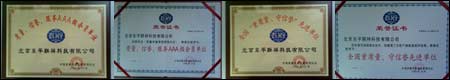 于2006年10月被中國質量信譽監督管理協會評為“中國質量信譽服務AAA級會員單位”,并授予了證書和銅牌。