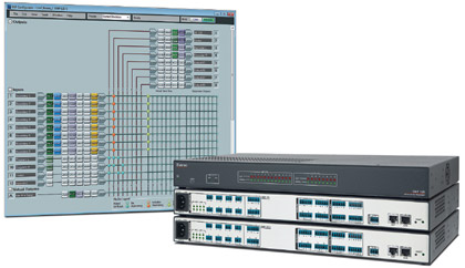 128 設(shè)備鏈接到一起,從而擴(kuò)展了輸入和輸出信號(hào)管理以及路由的能力。在需要進(jìn)行帶 DSP