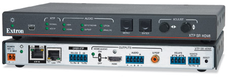 Extron電子很高興地宣布XTP SR HDMI現(xiàn)已開(kāi)始供貨,這是一款符合HDCP標(biāo)準(zhǔn)的圖像解析度轉(zhuǎn)換接收器,能接收來(lái)自XTP設(shè)備的HDMI、DVI、RGB高清分量視頻和標(biāo)清視頻信號(hào)。這款接收器提供的可選輸出分辨率高達(dá)1920x1200,包括HDTV1080p/60