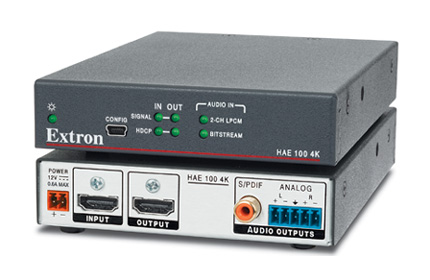Extron 電子很高興地推出了 HAE 100 4K,這是一款音頻解嵌器,可從 HDMI