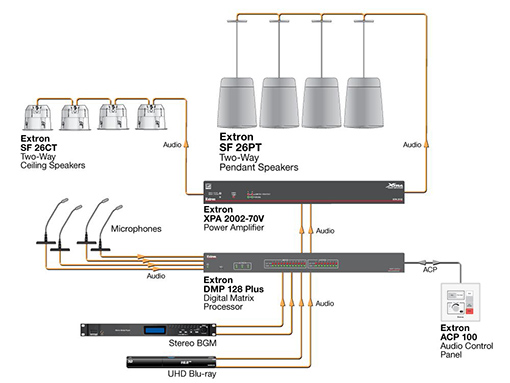 >> 與 Extron SF 26CT 天花板揚聲器提供一致的音頻特性