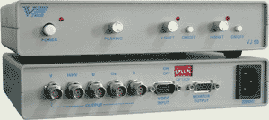 另外VJ50(30)還通過對同步信號的處理,能夠做到水平及垂直位置調整、同步增益調節以及同步格式的轉換,即根據實際需要可以選擇分離同步(HV)、復合同步(S)、以及同步隨綠(Gs)三種方式輸出。方便了各種不同場合的需求,可以很好地改善畫面質量,減輕了實際施工過程中的工作量,特別是在圖象畫面拼接方面有很好的實用性。一般的國內接口都不能提供這些全面的功能。