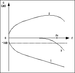 由于結構和材料的因素,超五類雙絞線的衰減相當于73-3同軸電纜的2倍,傳輸RGB信號,一般不可超過20米,因此必須采取補償放大措施。超五類雙絞線的衰減特性呈二次曲線狀,隨著頻率的升高,衰減也增大。線路的這一衰減特性表現在圖象上是:一,圖象細節模糊。二,圖象有拖尾現象。普通放大器的在通帶內提供的是一平直的特性,是不能起到有效的補償作用的。要有效的補償線路損耗,放大器的增益頻率特性在通帶內必須與線路傳輸特性相反。圖8的曲線2是一個頻率補償放大器的特性曲線。曲線1和曲線2迭加,得到曲線3,即為補償放大后的頻率特性。fc為-3dB頻率點,也即帶寬。