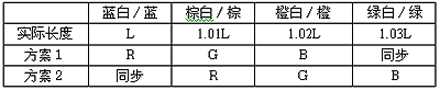 根據第2節分析,超五類雙絞線為了消除干擾和相互間的串擾,4對線采取不同的扭距,見表2。于是產生了一個新的問題,即圖象分色問題。這是由于4對線的扭距不同,各自的增長系數也就不同,根據測試,超五類雙絞線藍、棕、橙、綠四對線的實際長度差值依次為百分之一。如以綠線的長度為基準值L,則4對線的長度見表2。