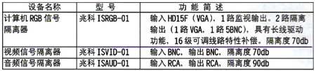 在某些場合,系統干擾產生的原因和復雜,而受到種種因素的限制,無法排除。此時,就必須采用信號隔離器來消除干擾。隔離器是采取將輸入和輸出兩部分的地線隔離的方法來消除干擾的。北京兆科恒業電子技術有限公司根據近年來排除系統干擾的實踐,研制成功了系列抗干擾的隔離器設備。這些設備有RGB信號隔離器,視頻信號隔離器,音頻信號隔離器等,產品型號與功能見下表。