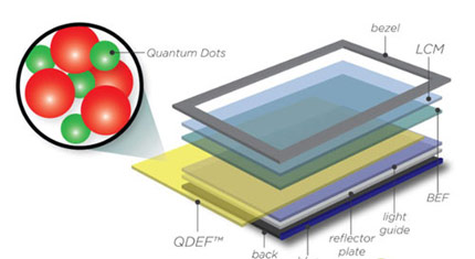 QLED(Quantum Dot LED)其實就是量子點屏幕,理論色域能比OLED高出50%以上,同時亮度也要更高,而且更省電,可以說是移動設備的最佳伴侶。從技術上來說,QLED是LCD與OLED的混合體,主要是采用藍色LED光源照射量子點的方式來激發紅光及綠光。色域比OLED廣、亮度提升30%以上,功耗降低30%以上。
