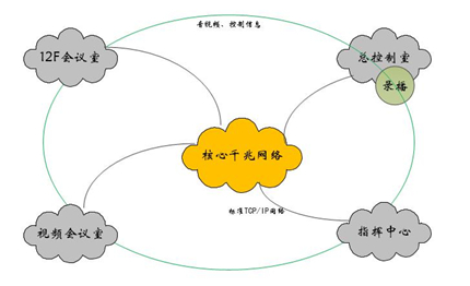 根據用戶的需求,我公司經過反復論證研究,該系統的指揮中心與12F會議室、視頻會議室進行整體設計,一體化建設,采用網絡化音視頻分布式交互系統。該系統具備以下特點: