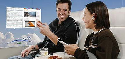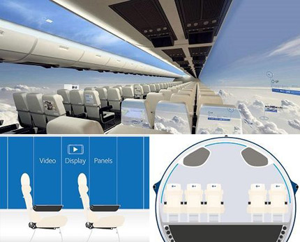 透過鏡頭的連結,它能為乘客提供飛機外在世界的透明全景,以及在點選觀光景點取得更多解說、上網瀏覽或單純地關機動作(就像現在拉下窗簾一樣)時增加互動性。這種屏幕當然十分巨大、高分辨率、超輕薄,并成為機身的主要部分。隨著可印刷電子的出現,這一切可望夢想成真。 |