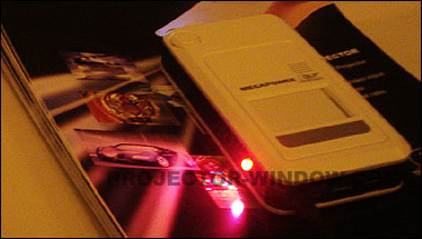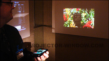 投影手機深得與會人士的喜愛,而這款正在展示的產品,機身與普通手機沒有什么差別,可見內嵌式DLP 微投的元件研發已經較為成熟。 |