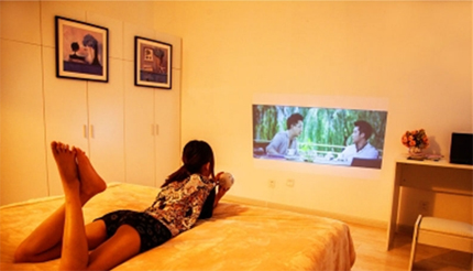 家庭影院一定需要屏幕,看電影一定要幕布嗎?如果在一個沒有屏的終端,搭載上安卓系統,像手機和平板電腦一樣下載和安裝各種App,完全按自己喜歡的方式將影像投射在天花板、墻壁或出游時的帳篷上,以最舒服的姿態瀏覽網頁、聽音樂和看視頻,與家人和朋友輕松互動,會不會更愜意?