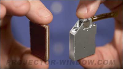 為用在手機(jī)、PDA以及其他手持顯示設(shè)備上的微型投影元件產(chǎn)品并不是一個(gè)新鮮的話題,在2006年已由很多公司都進(jìn)入了這個(gè)領(lǐng)域。Microvision此次開(kāi)發(fā)出了采用2軸MEMS掃描儀和激光光源的嵌入式超小型投影儀樣機(jī),并在“2007年國(guó)際消費(fèi)者電子產(chǎn)品展進(jìn)行了專(zhuān)場(chǎng)演示。樣機(jī)的光通量為10~15lm。圖像分辨率相當(dāng)于WVGA。光源方面采用了美國(guó)Novalux公司生產(chǎn)的半導(dǎo)體激光光源“NECSEL”。技術(shù)上的主要特點(diǎn)是體積小、耗電低、成本低以及色域廣。另外,由于采用了激光光源,即使將圖像投射到彎曲的物體上,也可在整個(gè)畫(huà)面上顯示對(duì)準(zhǔn)焦點(diǎn)的圖像。目標(biāo)是將其應(yīng)用于手機(jī)、PDA以及數(shù)碼相機(jī)等移動(dòng)設(shè)備中。該公司的目標(biāo)是將投影儀像相機(jī)一樣嵌入手機(jī)中。