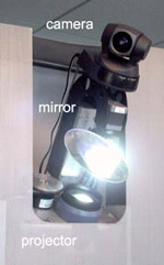 IBM推出的新產品帶來非常時尚的投影應用體驗,這款名為“無界限交互顯示Everywhere Interactive Display (EID)”的系統包括一個投影機、一個攝像頭,以及一個電動鏡頭組件,其可以在一定空間內創造出一個隨意移動的觸摸屏幕,這款系統可以完成多種應用功能,比如在辦公室中的組圖繪制以及電子白板展示等等。目前,這個新的系統已經在大型商場中進行適用,其被安置在一個展示窗口中,購物者可以通過觸摸屏控制自己的圖像合成到模特的臉上,并進行顯示。作為一個小小的娛樂系統為用戶帶來更多歡樂。
