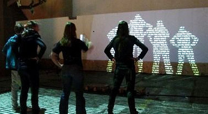 對于我們來說投影的運用比較局限,多數(shù)人停留在商務以及影音娛樂的范疇,但是如今投影逐漸會融入到一些創(chuàng)意作品亦或是藝術作品中,帶來極具沖擊力的視覺感受。投影機的強光或許會讓不小心路過的人尷尬不已,而這套交互式投影卻神奇地吸引著路人讓他們參與其中。這套系統(tǒng)由土耳其伊斯坦布爾的創(chuàng)意工作室設計,他們使用多重光效映射,首先在地面投影出一行行滾動的字母,當有人踏入此區(qū)域后,感應器會把被人影遮住的字母部分投射到旁邊的豎直墻面上,而形成由字母組成的真人輪廓。而且,無論做什么姿勢,墻上的“輪廓”都可以完全同步。