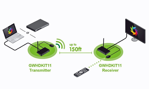 另外有一種無線連接HDMI設備的方法。這種方案可以實現在大型的房間里完全不使用長距離的HDMI線材,通常能支持到9-18米。但有一些設備可能能提供50米甚至更長的覆蓋范圍。