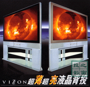 [投影之窗消息] 2005年5月,三洋公司發布了兩款VIZON系列液晶背投電視產品PLV-55WR1C和PLV-45WR1C,并且每款產品有“尊貴黑”和“貴族灰”兩種顏色可選。這兩款產品采用創新的短距離光學回路,創造出超薄機身,45寸產品的厚度為34cm,55寸產品的厚度為40cm,與帶機架擺放的平板電視的厚度不分伯仲。