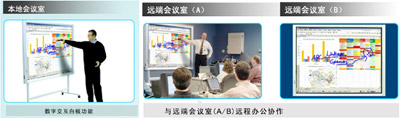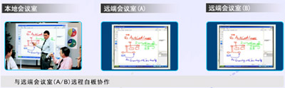 遠程白板協作,在遠程會議中,實現不同白板上的同步操作,使用者可以共同在一個白板畫面中書寫交流,使空間距離變為零。例如企業需要商討產品設計、工程方案時,白板協作的重要性有時甚至超過了視頻功能。