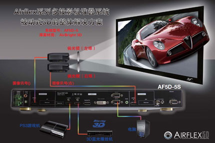 3D圖像,特別適合于影院級的3D高清家庭影院、商業或教育等市場。Airflex5D具有雙HDMI輸入,通過左右雙通首HDMI同時輸出高清畫質;Airflex5D內置9個可旋轉、彎曲的節點和4個角的幾何曲面自定義校正功能,圖像精確定位,可投影到不同形狀和大小的屏幕上,創建逼真的圖像效果。