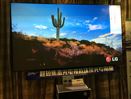ST超短焦激光電視專用抗環(huán)境光幕亮相廣州,展示了出色的視覺效果。億立EPV系列的DarkStar