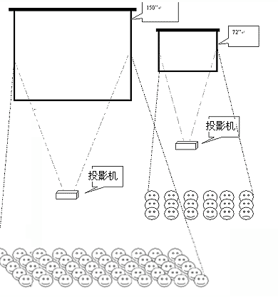 但150英寸屏幕可容納的觀眾和其大畫面震撼力絕非72英寸屏幕可比,同時屏幕尺寸越大,可觀看未變形畫面的觀眾人數(shù)就越多。