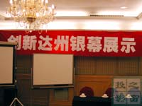 在展示會當(dāng)中,各企業(yè)代表分別就各自品牌銀幕品種特色、材質(zhì)以及制作工藝等進(jìn)行了有針對性的介紹,并對銀幕未來發(fā)展趨勢以及各公司2006年的市場策略給予了詳盡的闡述。現(xiàn)場還同時展出了OS/三石/APOLLO三品牌的銀幕產(chǎn)品。