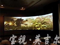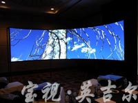 [投影之窗消息]  日前,我公司與某國際知名企業攜手在天津喜來登大酒店展示了一套無縫拼接投影顯示系統。我們為這次產品發布會提供了一塊120英寸×3的環形金屬硬幕。成為這次發布會的一個亮點。