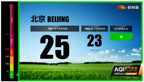 有鑒于此,鮮頻道在2014年年初,推出"空氣質量指數"頻道,數據采自于國家環境保護部,更新頻率為每小時一次,此將能為用戶提供精準的空氣狀況。鮮頻道將提供此頻道一年免費的試用,歡迎所有用戶至鮮頻道的網站下載體驗。http://www.orange-channel.com/free_download_AQI.html。 |