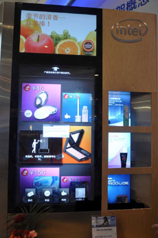 這一概念性的產(chǎn)品旨在借助日益發(fā)展的顯示技術(shù)和產(chǎn)品,使人們的實(shí)體購(gòu)物體驗(yàn)更加愉悅。據(jù)悉,英特爾及合作伙伴還展示了多款聯(lián)網(wǎng)數(shù)字標(biāo)牌概念應(yīng)用。智能售貨機(jī):這是英特爾與日本系統(tǒng)集成商合作開發(fā)的數(shù)字標(biāo)牌自動(dòng)售貨機(jī)。屏幕分上下兩塊,由三星提供。上層屏幕顯示廣告信息,下層屏幕顯示銷售信息。該設(shè)備支持手機(jī)、NFC和密碼(PIN)3種支付方式。