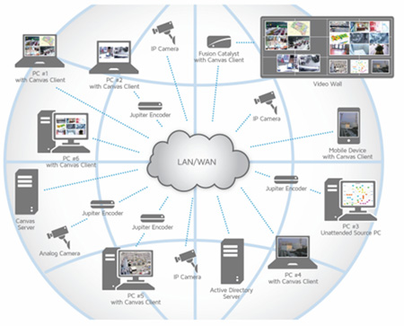 代表著整個顯示行業發展的未來趨勢,全組播流媒體網絡,雙向交互共享系統,任意圈點指揮決策,分發推送應急應用,canvas描繪了未來基于云技術的顯示系統,任何顯示設備都可以成為一個個顯示墻,信息不是事無巨細的一一呈現在所有人面前,而是各取所需,將自己處理之后的結果推送到下一個人的手中,一切都是以網絡為基礎,突破時間與空間的界限,再一次改變了整個顯示控制的格局。Canvas系統可以在顯示墻上顯示任何信源,包括視頻、數據、程序等等,這一切都可以被系統內成員在其PC或移動設備上互相共享,他們可以在不同樓層,不同城市,甚至不同國家。使用canvas