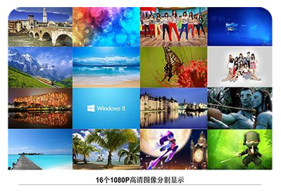 4.支持16個1080p圖像實時顯示,可在4K高清動態圖像上開出16個子窗口,顯示16路不同的1080p信號源,支持子窗口信號任意切換、圖像亮度、對比度、顏色、透明度、橫向定位、縱向定位的任意調節,可實現圖像自由疊加、漫游、畫中畫等多種顯示模式。