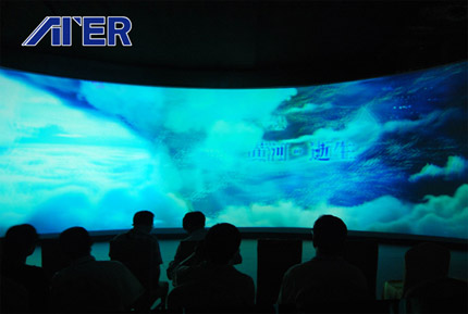 ATER利用AGT-ET“T”系列圖像融合仿真系統搭建的2通道大屏幕融合系統,實現圖像完美幾何變形,根據實際調整最終投影形態。這樣極大滿足了不同投影環境的需求,使得展現方式更靈活。該設備支持4096×1080等超高分辨率輸入,可滿足超大環形、不規則圖像的融合顯示需求。非常適合于展覽展示、教育仿真以及多媒體功能廳等系統使用。